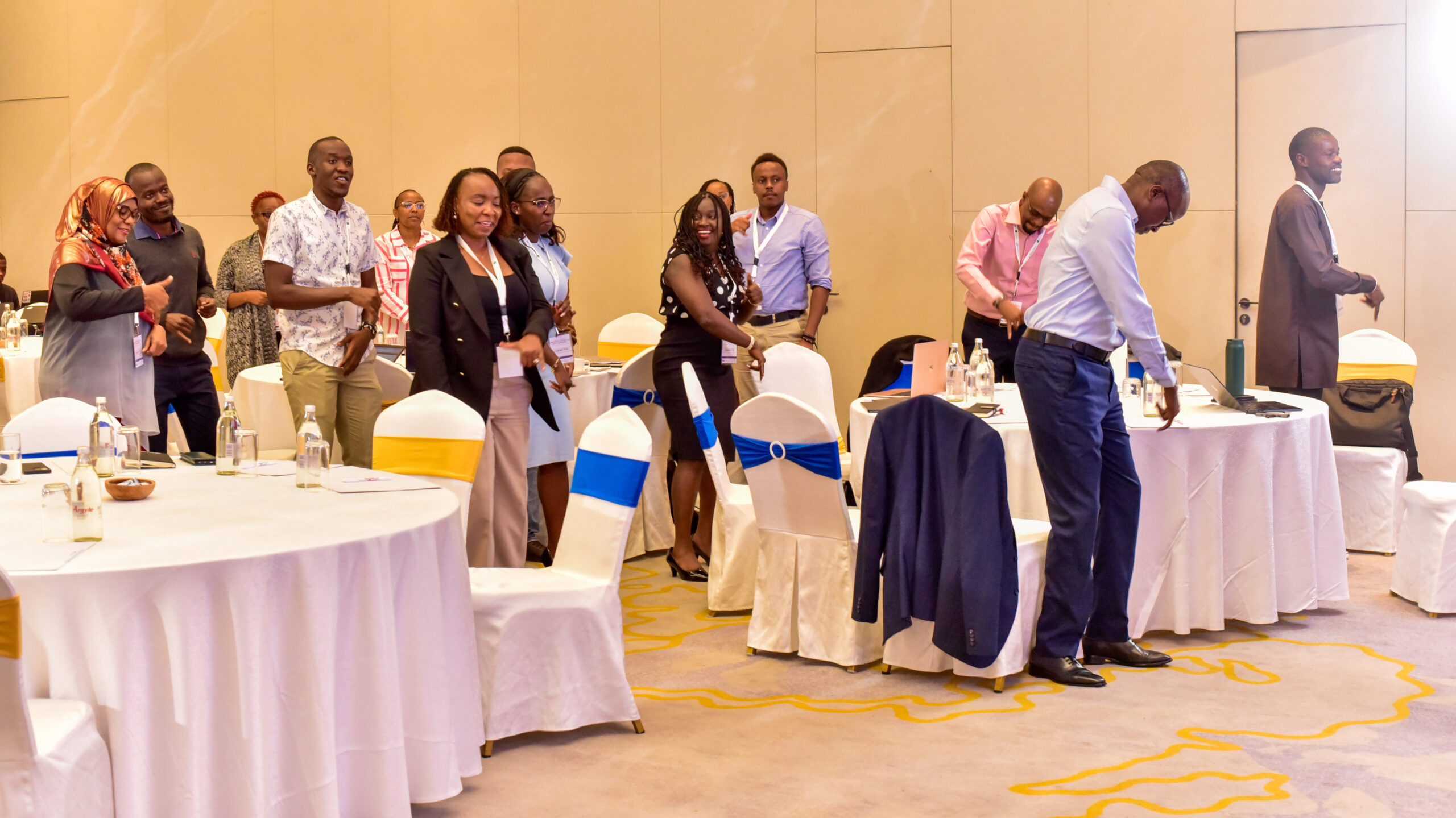 Not all audiences are comfortable with high energy engagement. In more formal conferences delivered by Billion Events, gentle movement has been used as an alternative.